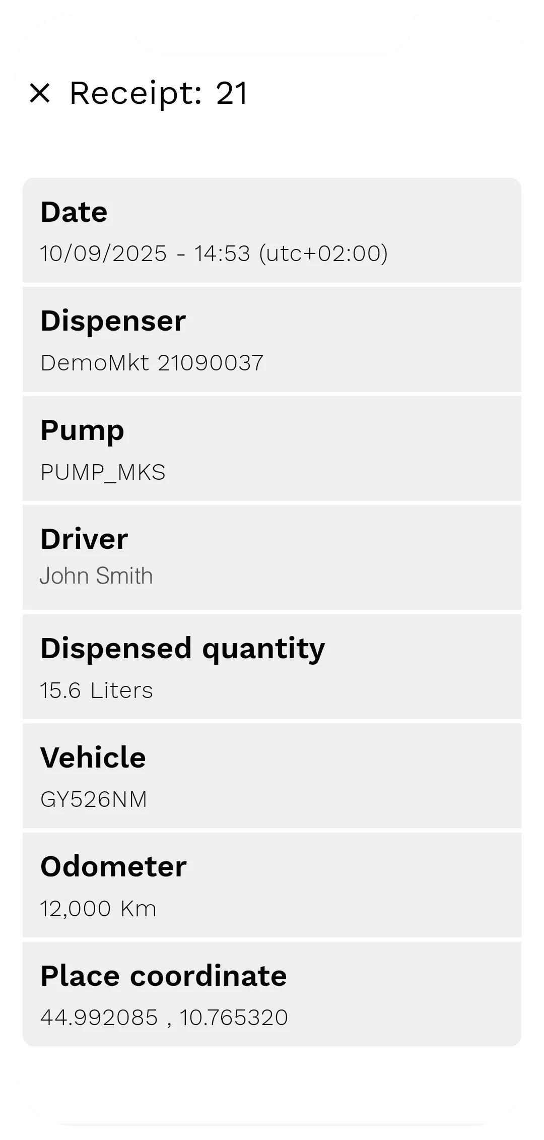 Los datos se recopilan desde la aplicación móvil. Los conductores utilizan la aplicación para trabajar con dispensadores de combustible habilitados para B.SMART.
